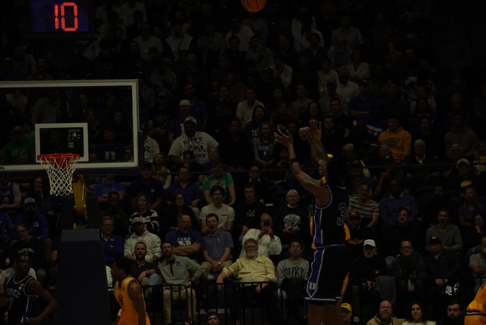 Duke answered with its own edge, leaning into its size and discipline. The away crowd grew louder, chants echoing through Haas as the Blue Devils matched Cal’s intensity possession for possession.